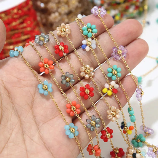 1 Meter Stainless Steel Daisy Flower Dainty Satellite Beaded Chains for Necklace Bracelet Anklets DIY Jewelry Making Supplies