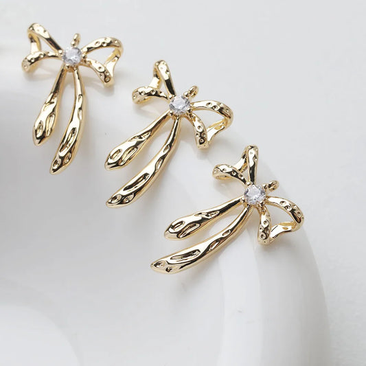 4PCS Dainty Bow Charm Jewelry Making Bracelet Necklace Pendant Supplies DIY Brass 14k Gold Plated Accessories 14.5*21.5mm