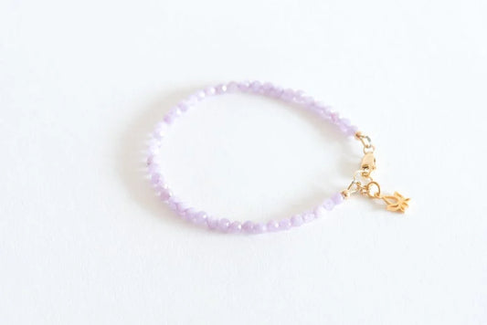 Delicate Kunzite Bracelet, Dainty Kunzite Bracelet, Lotus Gold Filled Charm
