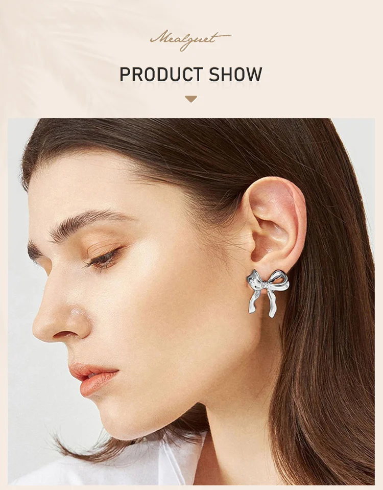Bow Ribbon Earrings Women Studs, Dainty Gold Plated Bowknot Statement Jewelry Gifts