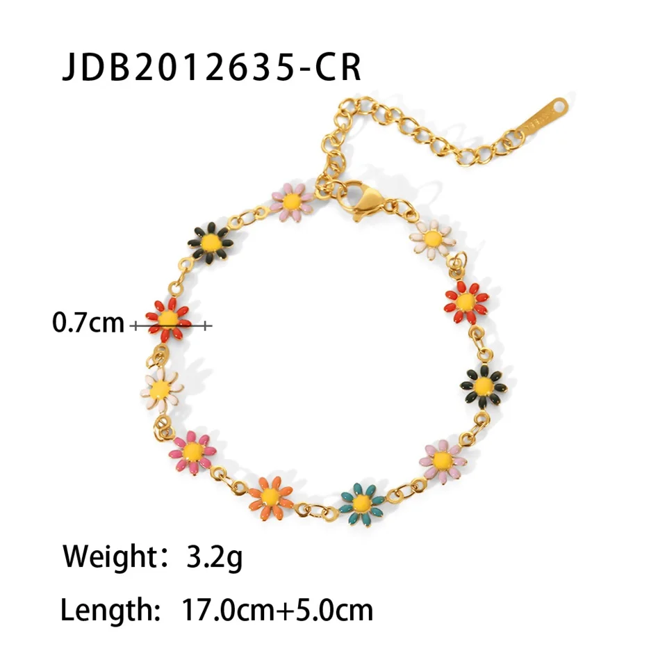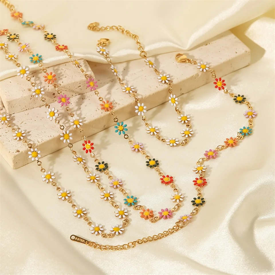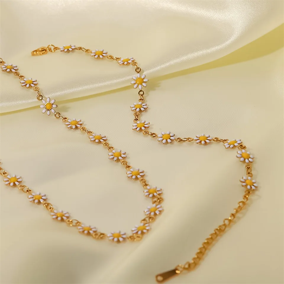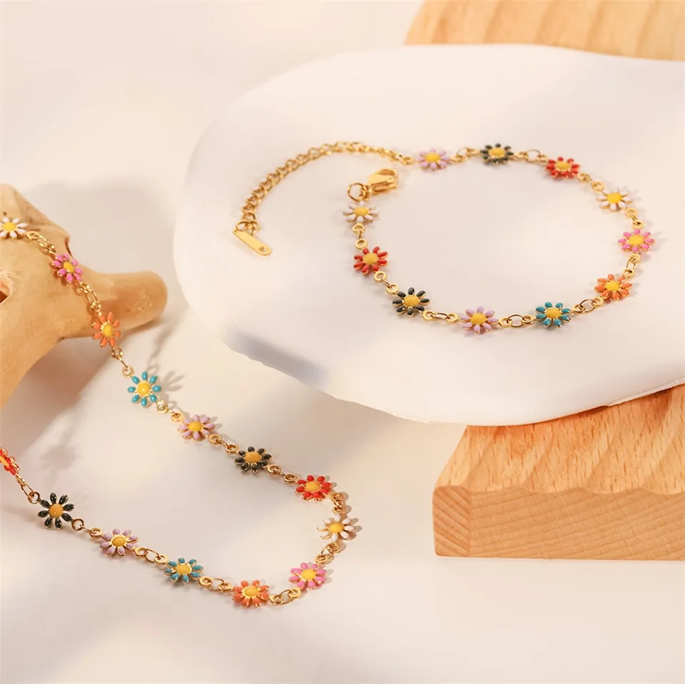Youthway Stylish New Little Flower Stainless Steel Necklace Bracelet Jewelry Set Statement PVD Golden Collar Necklace Bracelet