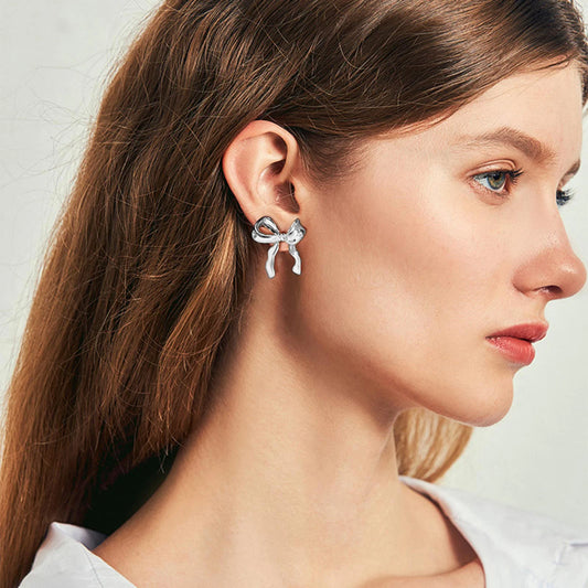 Bow Ribbon Earrings Women Studs, Dainty Gold Plated Bowknot Statement Jewelry Gifts