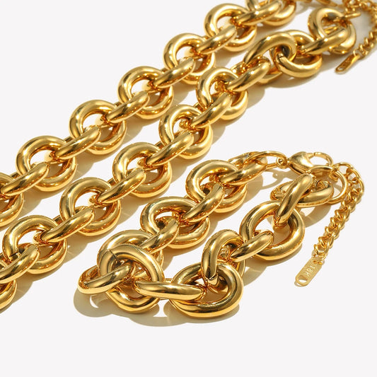 2025 Exaggerated Stainless Steel Tarnish Free Chunky O Chain Gold Choker Necklace Bracelet Jewelry Set Statement Necklace